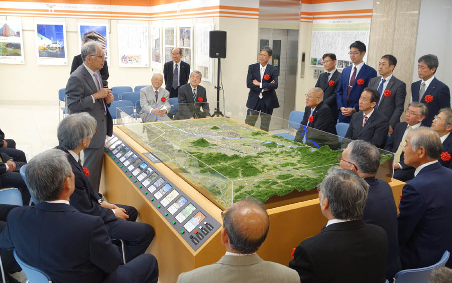 ジオラマ解説される橿原考古学研究所長 菅谷様(当模型の監修頂きました)
